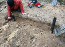 Нам же необходимо было привести территорию могилы в полный порядок. Приступая к работе, мы первым делом вкручиваем определяющие фундамент сваи.