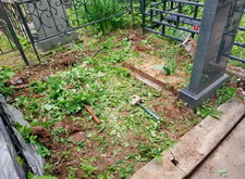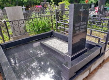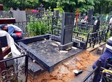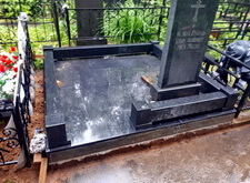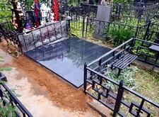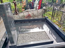 В завершении устанавливаем цветник, наполняем его каменной крошкой. Покрываем надписи на граните акриловой краской, которая сделает текст заметным во время дождя. Перед сдачей объекта клиенту проводим на участке влажную уборку. На последних фотографиях видно, что благодаря наземному покрытию место захоронения преобразилось до неузнаваемости.