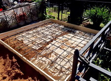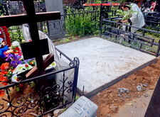 Первым делом мы демонтируем памятник, цветник, снимаем оградку, разламываем прилегающую к дорожке бетонную полосу. Затем выставляем опалубку по периметру участка.
