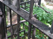 Это старая и мощная ограда. По словам клиентов ей более 60 лет. Достаточно длительный срок нижняя часть ограды находилась в земле, это ускорило коррозию металла, некоторые прутья разболтались, и задняя часть ограды провисла. Необходимо было отремонтировать ограду и покрасить ее.