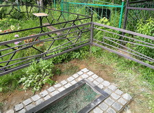 Горизонтальный памятник из гранита от времени немного покосился. Клиент заказал нам его восстановление, а также покраску ограждения.