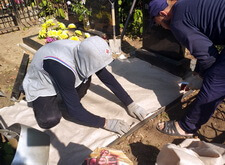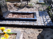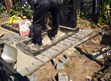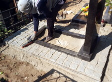 Ремонт покосившего памятника и оформление цветника брусчаткой
