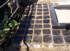 На данном объекте нам предстояло ровно установить покосившийся памятник, а вокруг цветника положить гранитную брусчатку.