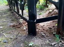 Все наваренные элементы, а также места сварки и вставленную секцию ограждения мы покрыли чёрной краской, защитив от ржавчины и повторного гниения