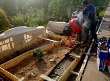 После сборки каркаса монтируем опалубку и заливаем её бетоном.