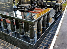 Когда работа с основанием практически завершена, переходим к следующему этапу – укладке гранитной брусчатки по периметру места захоронения. Во это же время покрываем гранитными плитами и залитый бетоном верх каркаса