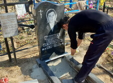 Клиентка обратилась к нам с просьбой восстановить покосившийся от времени памятник. Приехав на участок, мы обнаружили простенькое гранитное надгробье, немного завалившееся и просевшее от времени. После необходимых разъяснений мы, совместно с заказчицей, утвердили проект восстановления и принялись за работу.